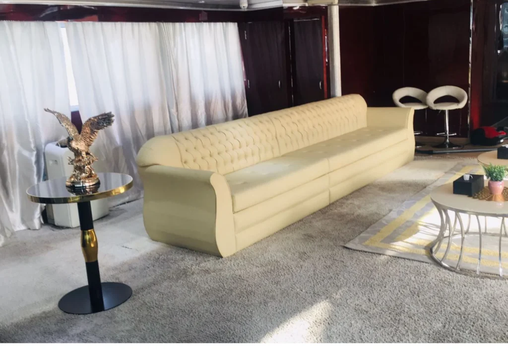 On the 100ft yacht, you can enjoy big seating areas, wide decks, and stylish indoor lounges. It’s perfect for birthdays, gatherings, or sightseeing while relaxing and taking photos of Dubai’s famous landmarks.
